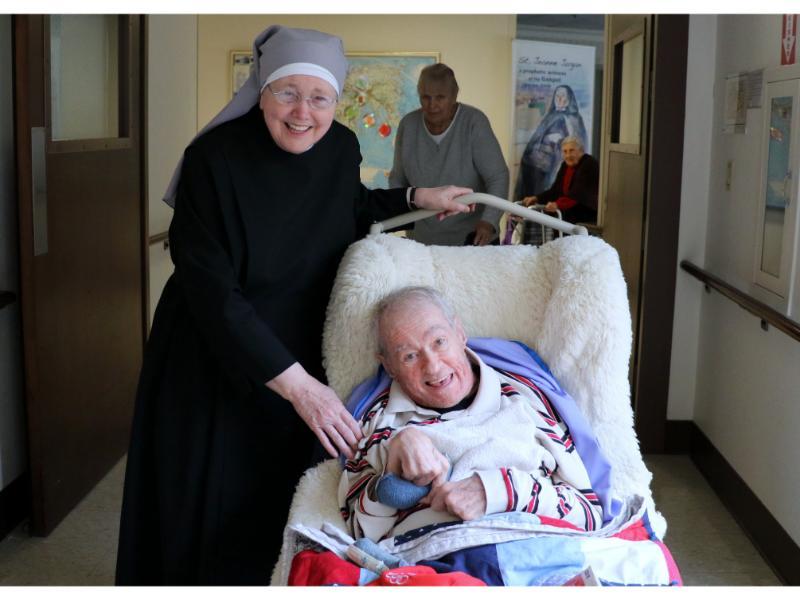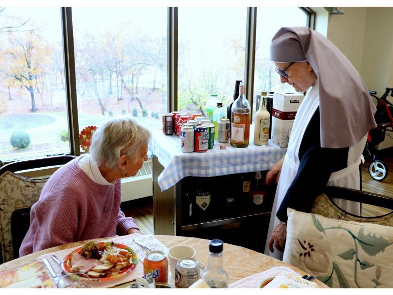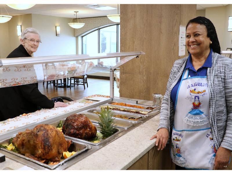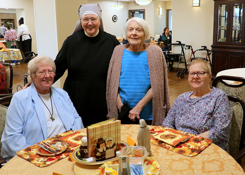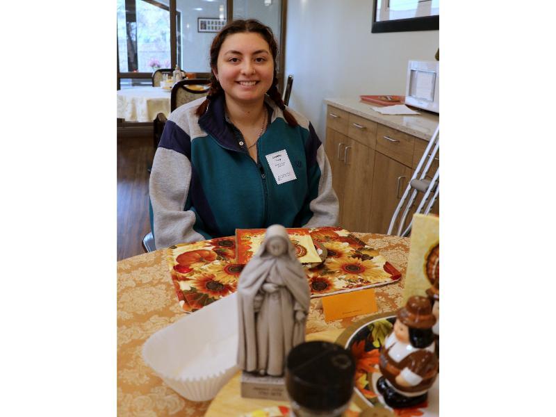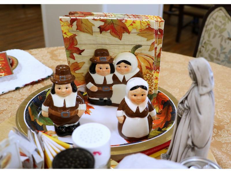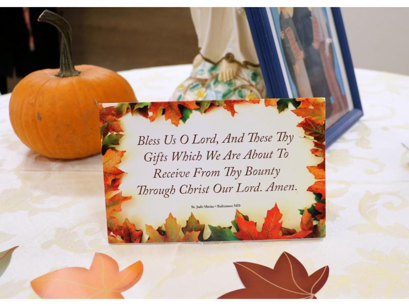 On Thanksgiving day, Residents and some of their family members gathered in the sweetly decorated dining rooms for a delicious and memorable feast. Msgr. Bazan led the blessing on the first floor, while Fr. Edward Flanagan, O.F.M., offered a thanksgiving blessing on the second floor. We are privileged to feed between eighty to ninety-five people every day, and this special day was no exception.