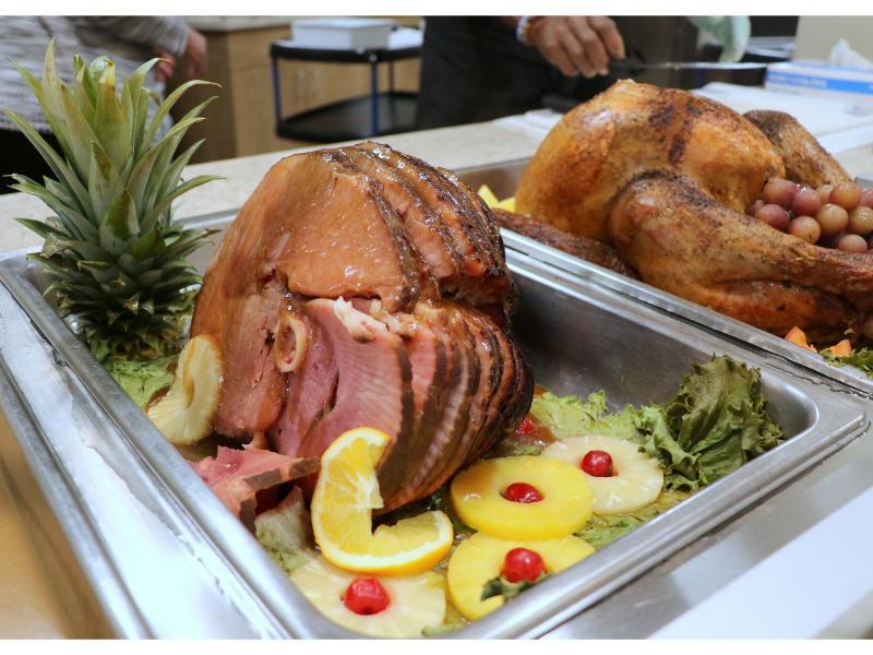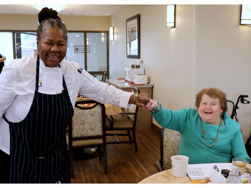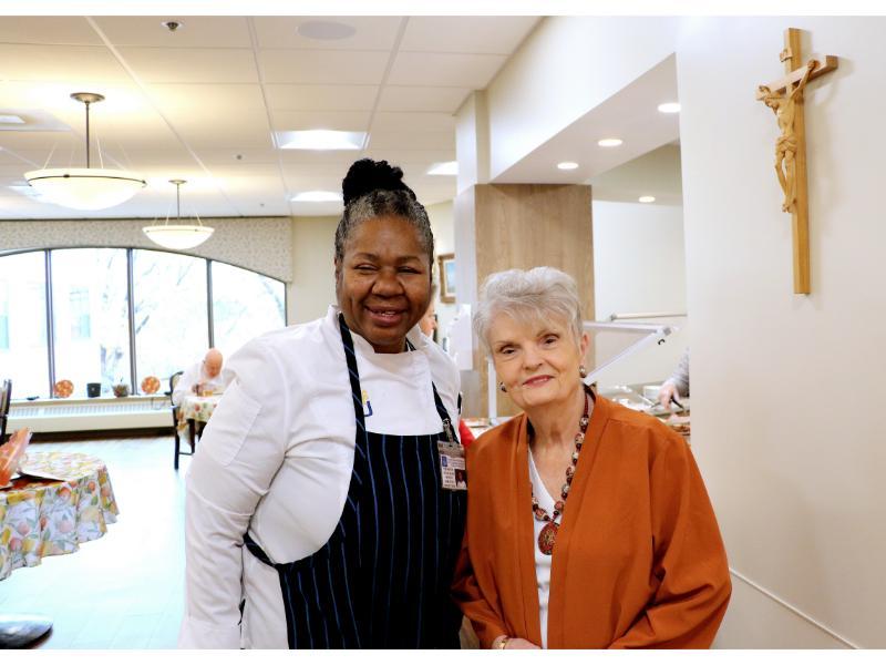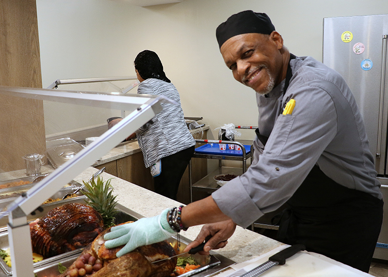 In preparation for Thanksgiving, Charron and the entire Unidine team in the kitchen ¾ including the chef, utility workers, cooks, and pantry aides ¾ worked tirelessly to create and then serve a meal that was nourishing and celebratory. Hand-carved turkey took center stage, and their dedication ensured that each Resident enjoyed a meal crafted with love and care.
