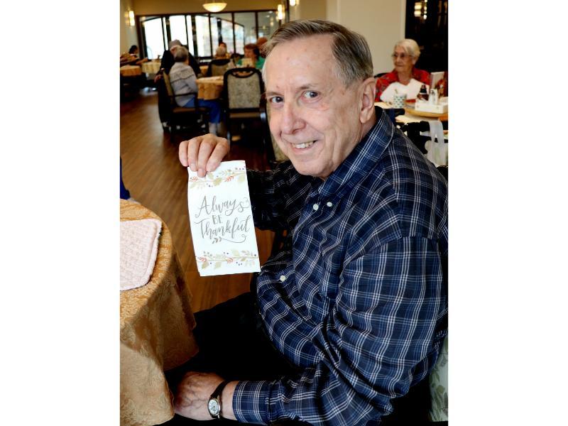 The festivities began on Wednesday afternoon with a heartfelt Gratitude Circle in our café. Our community gathered to share reflections on what they are most thankful for, expressing gratitude for the blessings in their lives. Nilla, the assistant director of nursing, conveyed her joy in working here, stating, “I’m so happy to work here. It’s a wonderful opportunity that you allow us to care for you. You are in my heart.” Her words resonated deeply with everyone present. Susan, a Resident, shared her gratitude for the divine, saying, “God is completely good. I am so thankful for God, Joseph and Mary.” In unison everyone added, “and Jesus,” to which she agreed with a smile. These moments of sharing remind us of the many blessings in our lives, from a roof over our heads and loving family and friends, to the beauty of waking each morning and the spiritual joys that enrich our souls.